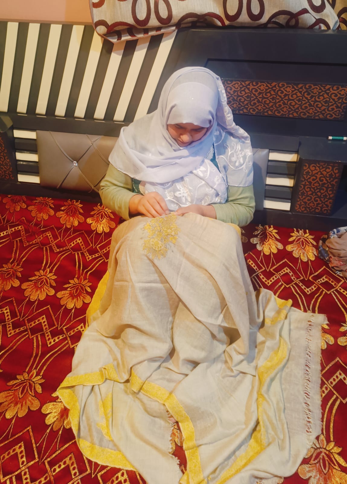 Aabida Shafi’s life is a story of quiet strength and perseverance. Growing up in a poor family, with her father working long hours as an auto driver to provide for her, her brother, and two sisters, Aabida was no stranger to hardship. She learned about the traditional hand embroidery course offered by the ActionAid Eductrain Foundation Centre through the mobilization. She decided to enroll in the program, determined to help improve her family’s financial situation. Watching her family struggle, she felt an overwhelming need to contribute and ease their burden. This resolve led her to learn traditional hand embroidery, a skill rooted in culture and creativity, from the ActionAid Eductrain Foundation Centre in Sopore. Aabida poured her heart into perfecting her craft, transforming delicate threads into intricate designs. Her talent and hard work soon began to pay off, enabling her to earn not just for herself but also to support her family. For Aabida, every piece she creates is more than embroidery—it’s a stitch of hope for a brighter future. Her journey stands as a testament to the power of determination and love for one’s family amidst the trials of life.